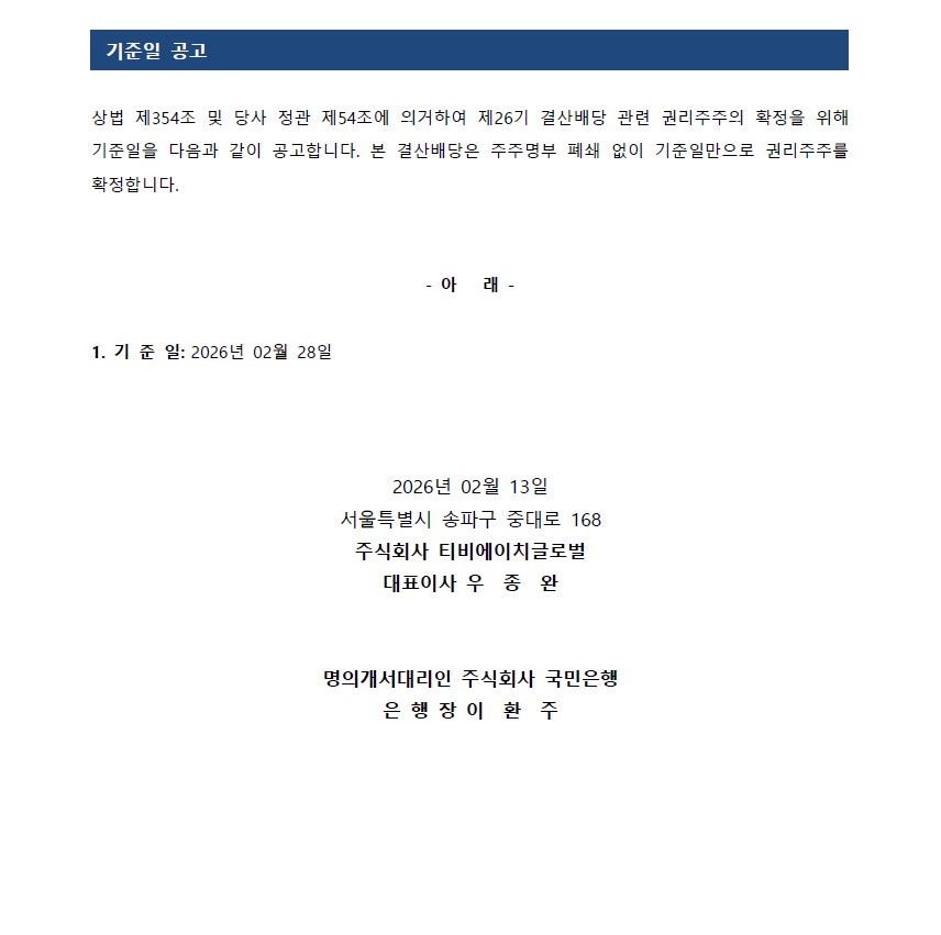 (주)티비에이치글로벌의 공고 내용을 공지하며, 첨부된 자료도 다운로드 가능합니다.